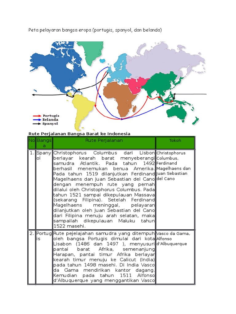 2) kedatangan bangsa spanyol di maluku. Eninukaeni yunimediyanti sukmawati ratnasari riskavivyanti nahunsoulisa sma n 3 buru xi_ia_2. Peta dunia rute perjalanan bangsa eropa ke indonesia. Gambarlah peta rute kedatangan bangsa bangsa barat ke indonesia. Rute perjalanan bangsa eropa ke indonesia.